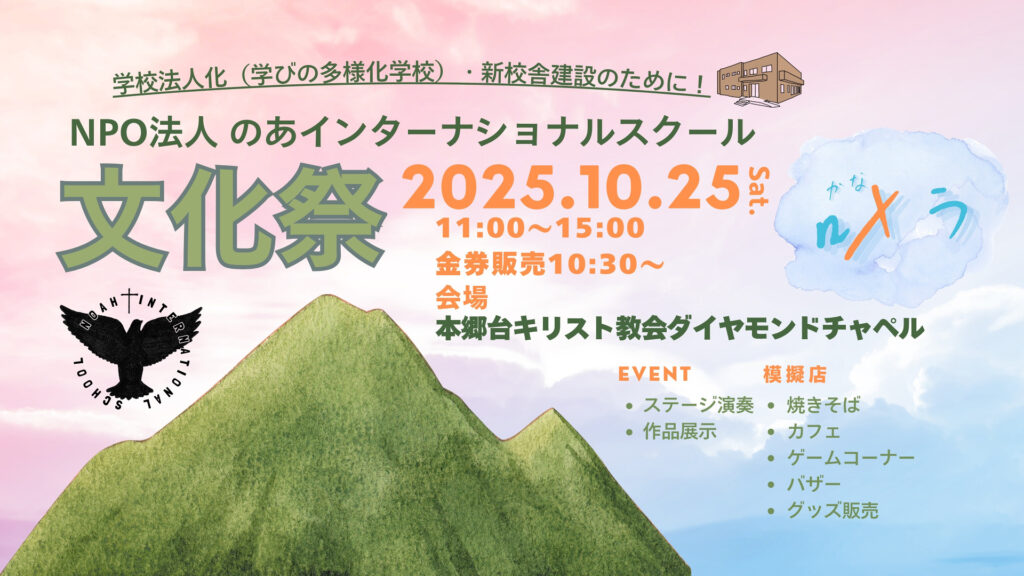関連団体の「のあインターナショナルスクール」で今年も文化祭を行います✨