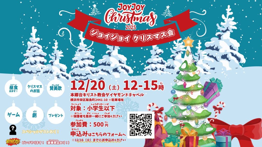 - 場所: 本郷台キリスト教会ダイヤモンドチャペル(駐車場有)