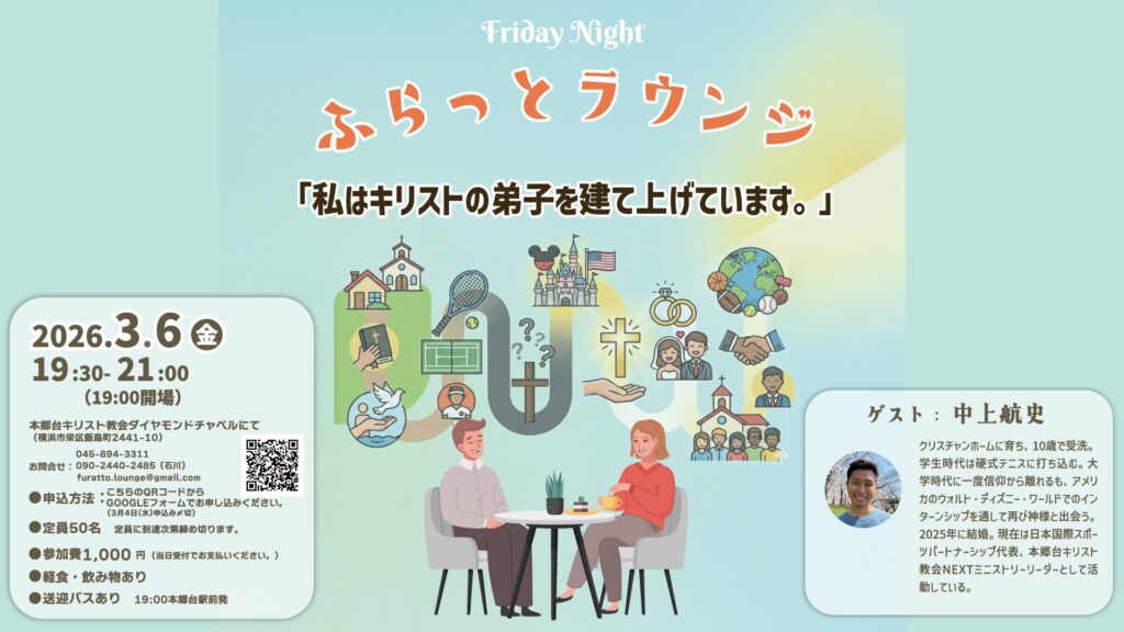 - 会場: 本郷台キリスト教会ダイヤモンドチャペル